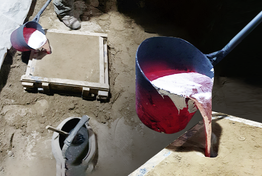 - 퍼온 쇳물을 몰드의 쇳물주입구에 붓습니다.